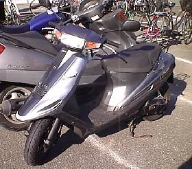 「スズキ・アドレスV100」というモデルで、50CCに見えるかもしれませんが、2ストの100CCで、メーターは100キロまで刻んであります。80キロぐらいしか出したことないですが。