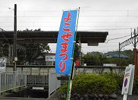 駅をおりるとさっそく”よこぜまつり”告知のノボリがはためいている。おお!