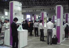 Apps Japanというスマホアプリなどを展示しているブース(右写真)があったのだが、一人立ち食いそばのようなせまいブース。なんと世知辛い!これで1コマいくら払ってるんだろうか!?こんなとこに一日中立っていたらくたびれてしまう。少なくとも椅子ぐらいはほしいよな。ここだけはやたら人口密集地帯になっていた。お客じゃなくて、関係者で....。