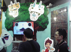バンダイはかなりデカイブースをかまえ自慢のキャラクターたちをディズニーランドよろしく並べていました。ポケモン、仮面ライダーとかプリキュアは定番商品ですが、今一番の話題のキャラクターは”妖怪ウォッチ”でしょう。妖怪版のポケモンみたいなアニメですが、”妖怪メダル”というコレクターグッズが大きなお友達も含んで過熱しています。メダル自体はプラスチック製のけっこうショボイもので定価は2枚200円(右画像の壁に並んでるのがメダル)。ところがこれをもちゃ屋の店頭で入手するのはほぼ不可能な状態。メダルは定価の数倍から数十倍で取引されている。またやっとるのか!バンダイは....。キッズがほしがるおもちゃをつくっときながら十分な供給体制をつくらず過熱するにまかせる。いつもそうだから確信犯としか思えない。